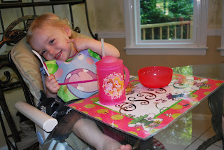 Here's Reese enjoying her first bowl of "cereal and